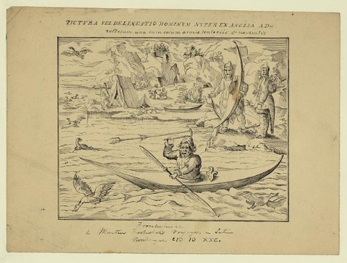 Photo Pictura vel delineatio hominum nuper ex Anglia AD vectorum una cum corum armis tentoriis, and naviculis 1850