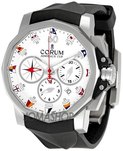 Stainless Steel case with a black vulcanized rubber bracelet. Fixed bezel. White dial with luminous hands and markers. Certified chronometer - three sub-dials. Automatic movement. scratch resistant sapphire crystal. Black vulcanized rubber crown guard. Case size: 40 mm. Case thickness: 15 mm. Deployment clasp. Water Resistant to 100 meters / 330 feet. Includes Corum combo pen/pencil. Corum Admiral's Cup Challenge Men's Watch 75369120F371-AA92.