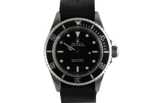 Rolex Mens Stainless Steel Submariner With Black Dial. Features A Nato Strap Band And Stainless Steel Rotating Bezel. Model Number: 14060