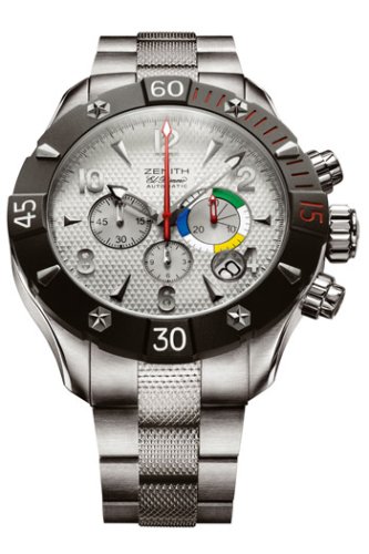 Stainless Steel Case. Stainless Steel Strap. Silver Guilloche Dial. Stainless steel rotating bezel. Scratch Resistant Sapphire Crystal. Deployment buckle. Case Diameter: 46.5mm. Automatic Movement. Water Resistant At 300 Meters (1000 Feet). Zenith Defy Classic Chronograph Aero Mens Watch 03.0526.4000/01.M526